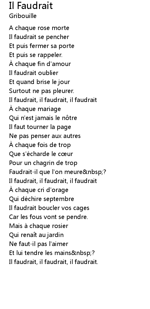 | Il faudrait, il faudrait, il faudrait | |