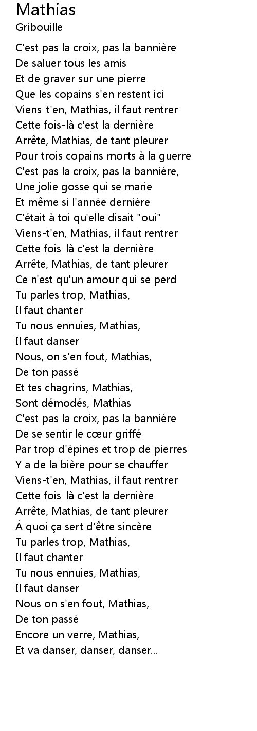 | Arr te, Mathias, de tant pleurer | |