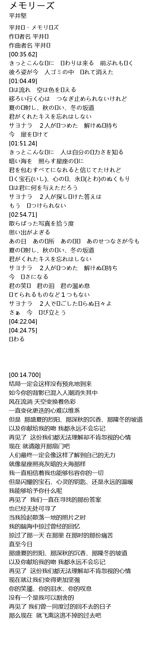 | [01:36.55] | サヨナラ 2人が�つめた 解けぬ�持ち |