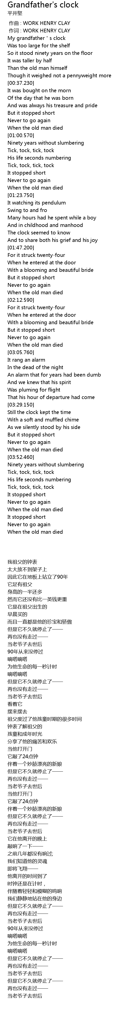 | [00:01.00] | 作词 : WORK HENRY CLAY |