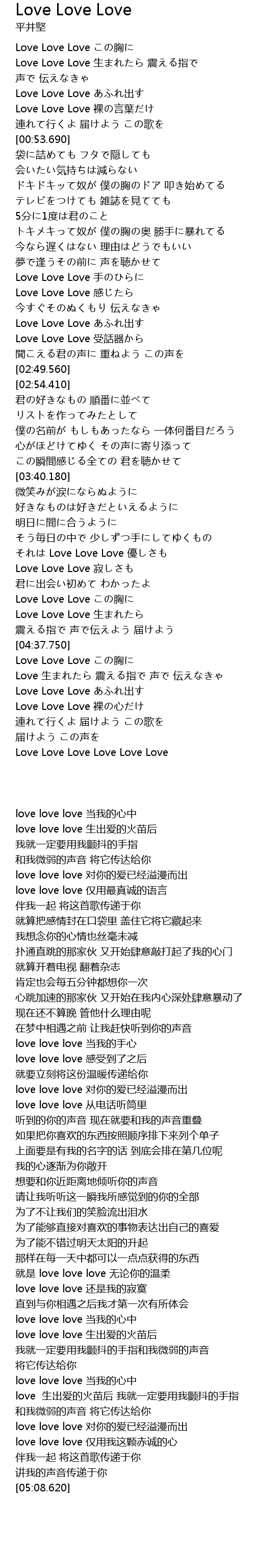 | [04:50.650] | Love Love Love 裸の心だけ |