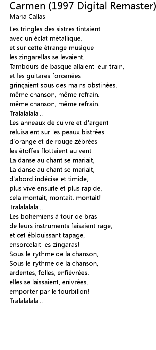| Song | Carmen (1997 Digital Remaster), Act 2: Chanson bohème: les tringles des sistres tintaient |
