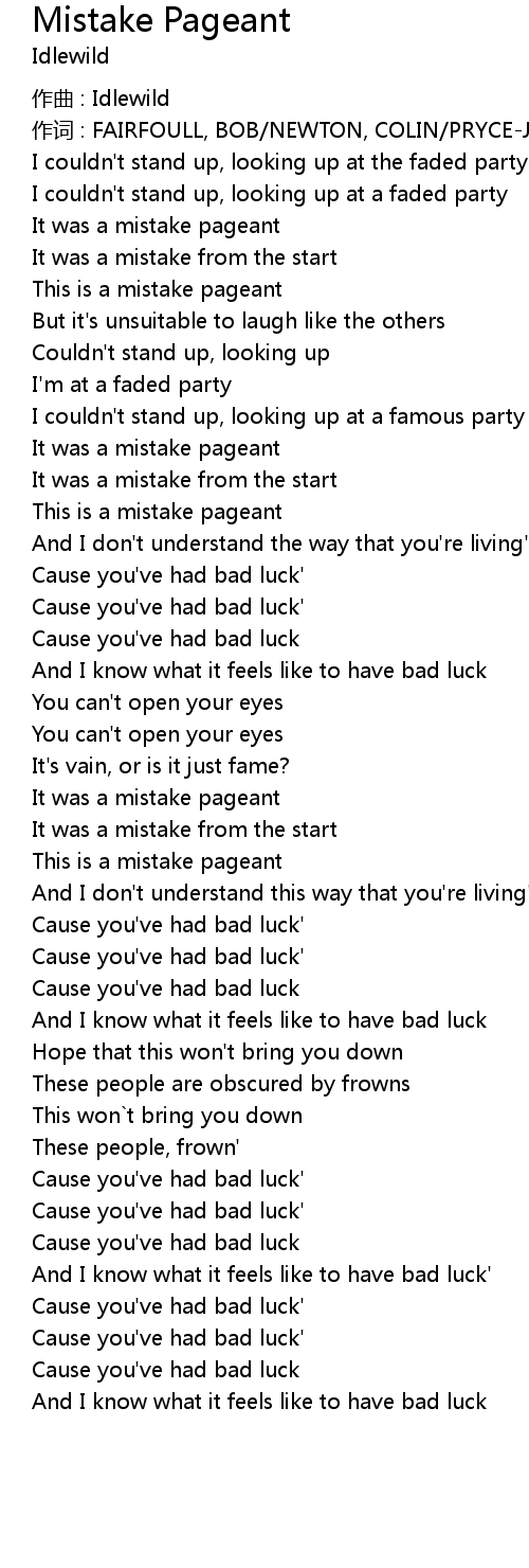 | Song | Mistake Pageant |