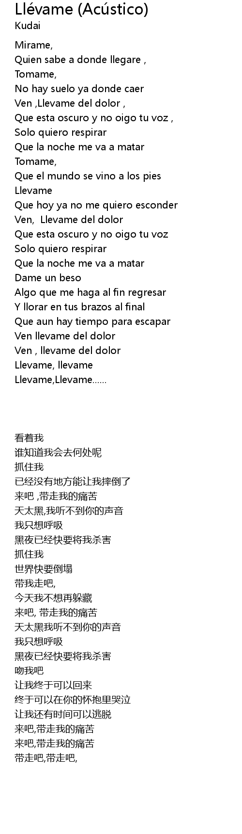 Llévame (Acústico) Lle vame Acu stico Lyrics