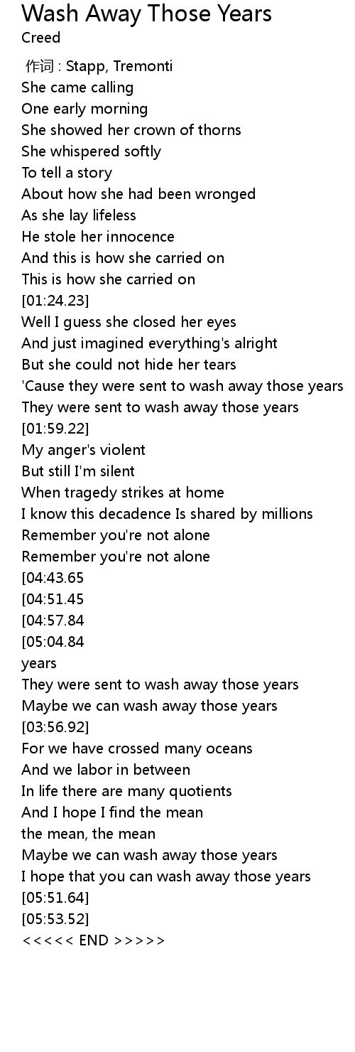| [01:46.89] | ' Cause they were sent to wash away those years |