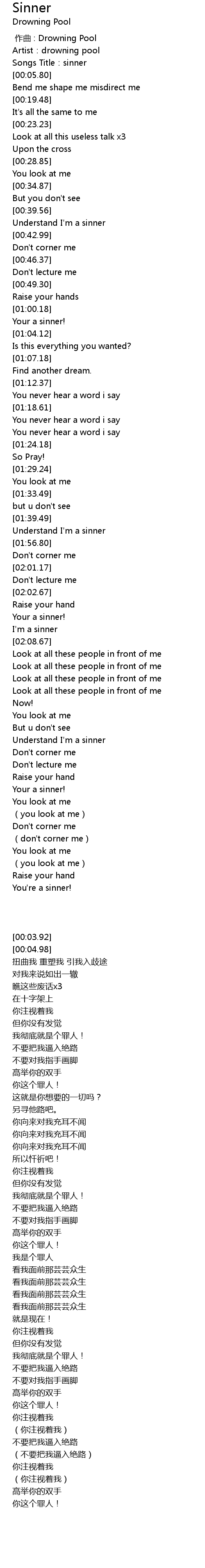 | [00:00.00] | zuò qǔ : Drowning Pool |
