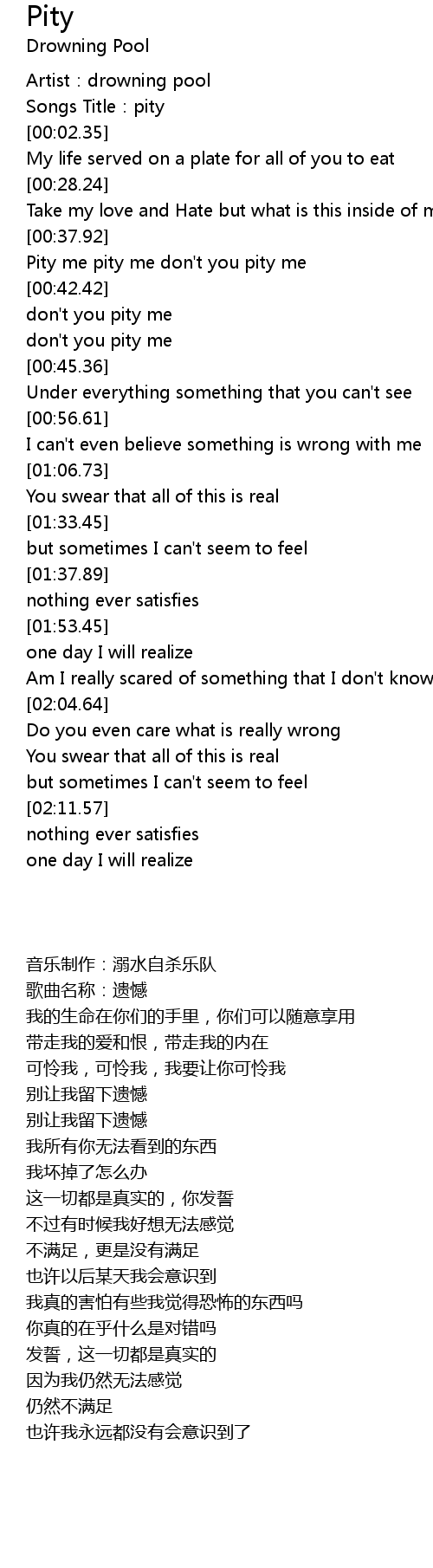 | [00:40.05] | Pity me pity me don' t you pity me |
