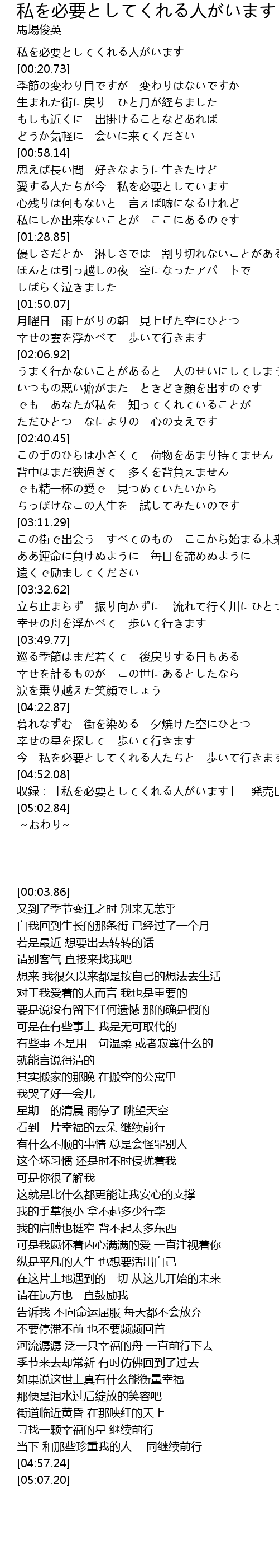 | [00:03.86] | 私を必要としてくれる人がいます |
