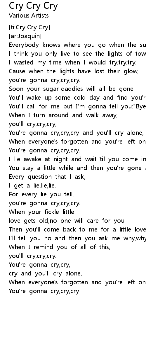 [00:50.955] You're gonna cry,cry,cry and you'll cry alone,