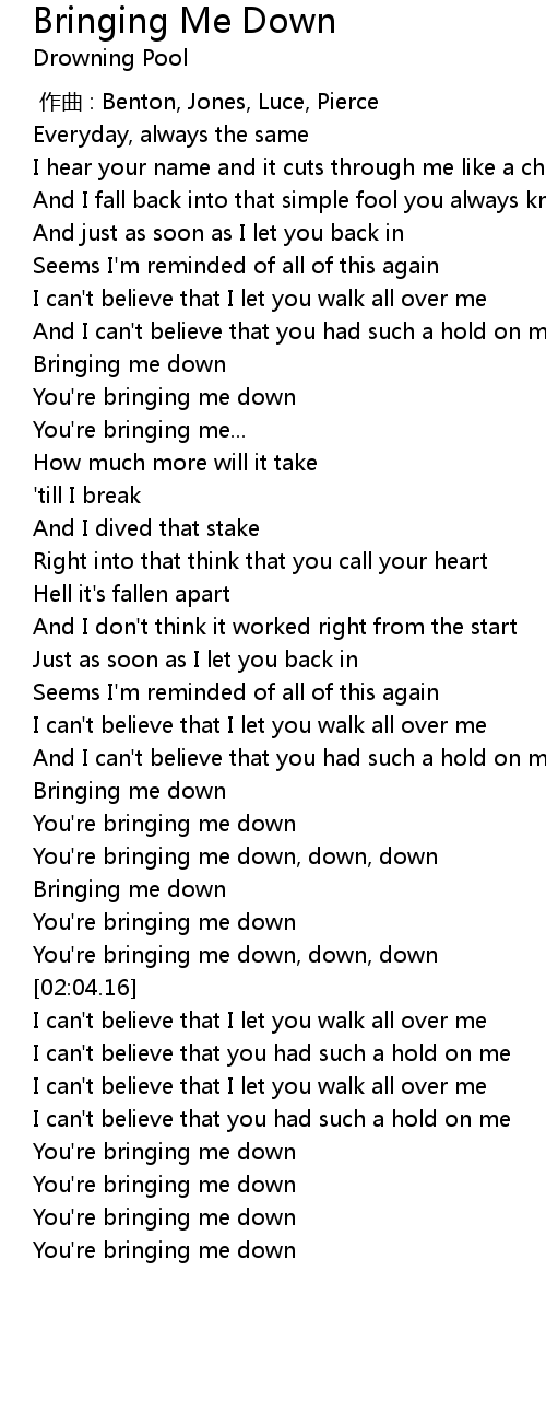 | [01:52.73] | You're bringing me down, down, down |