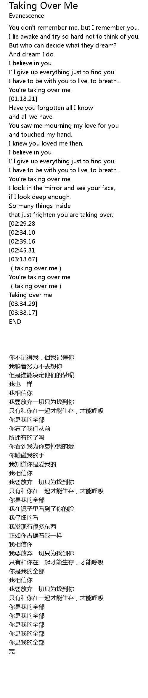 | [03:06.57][02:45.31] | You' re taking over me. |