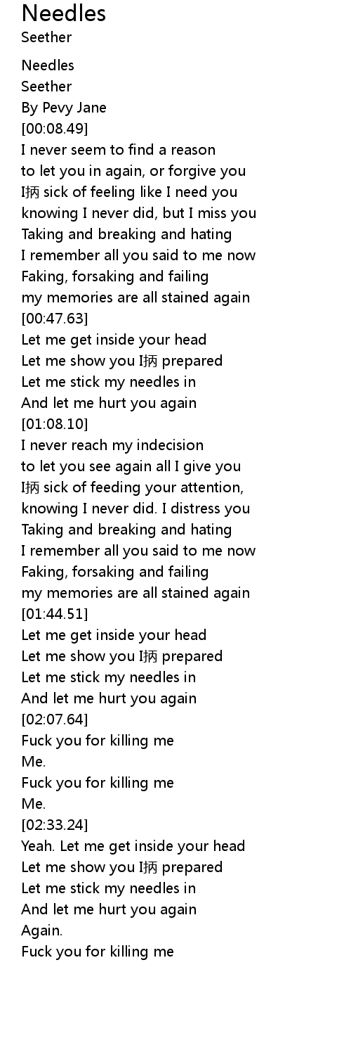 | [03:05.43] | Let me stick my needles in |