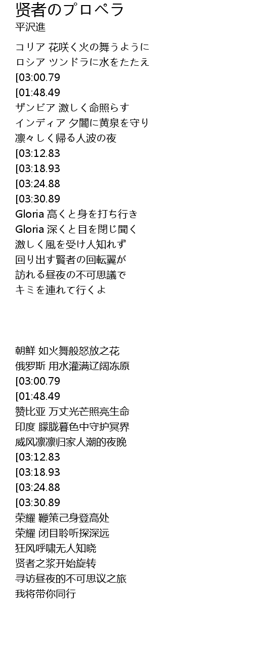 | [02:00.92][03:24.88] | 眠らない賢者の眼差しで |