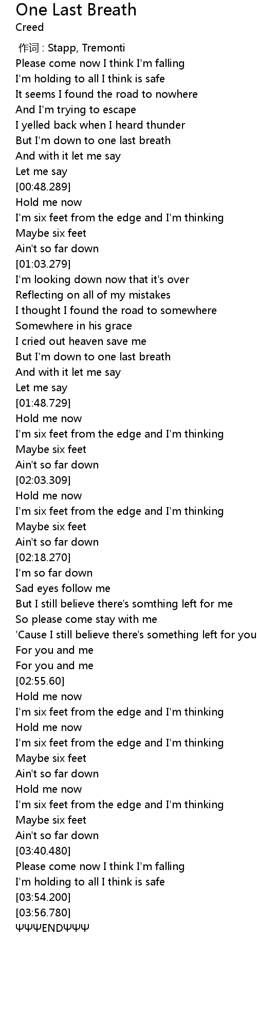 | [00:52.299] | I' m six feet from the edge and I' m thinking |