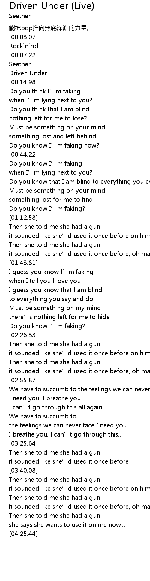 | [03:41.12] | Then she told me she had a gun |