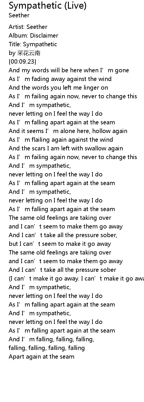 | [02:54.64] | I can' t make it go away. I can' t make it go away |