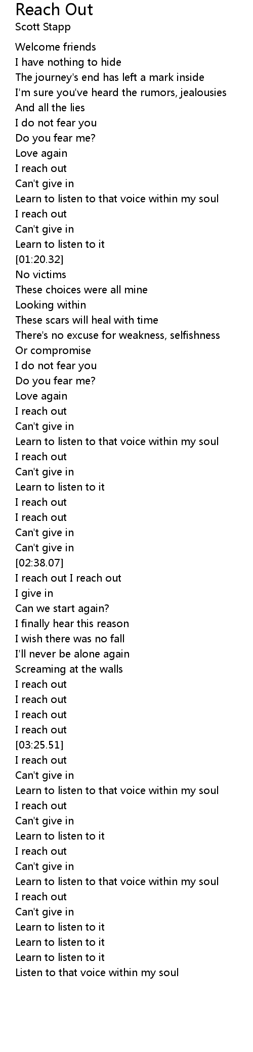 I reach out I reach out |
