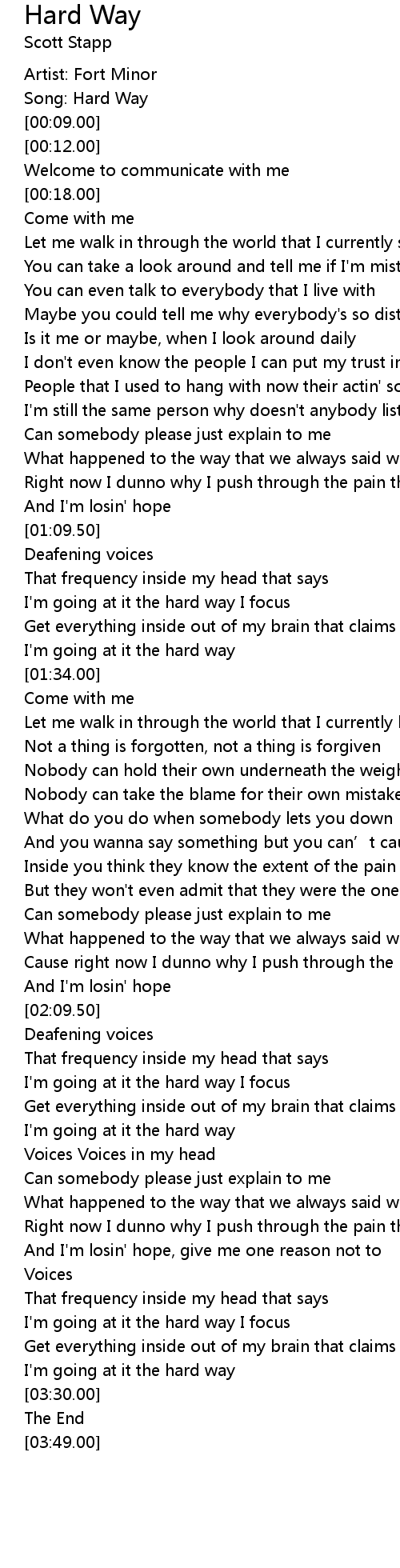 | [00:05.00] | Song: Hard Way |