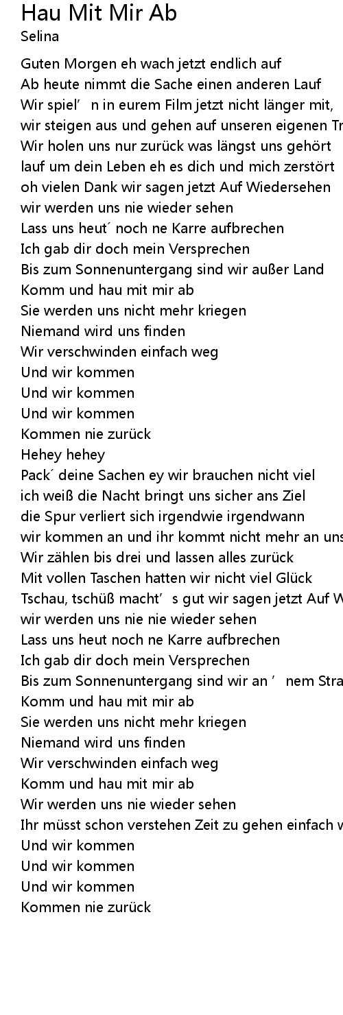 | Ihr mü sst schon verstehen Zeit zu gehen einfach weg | |
