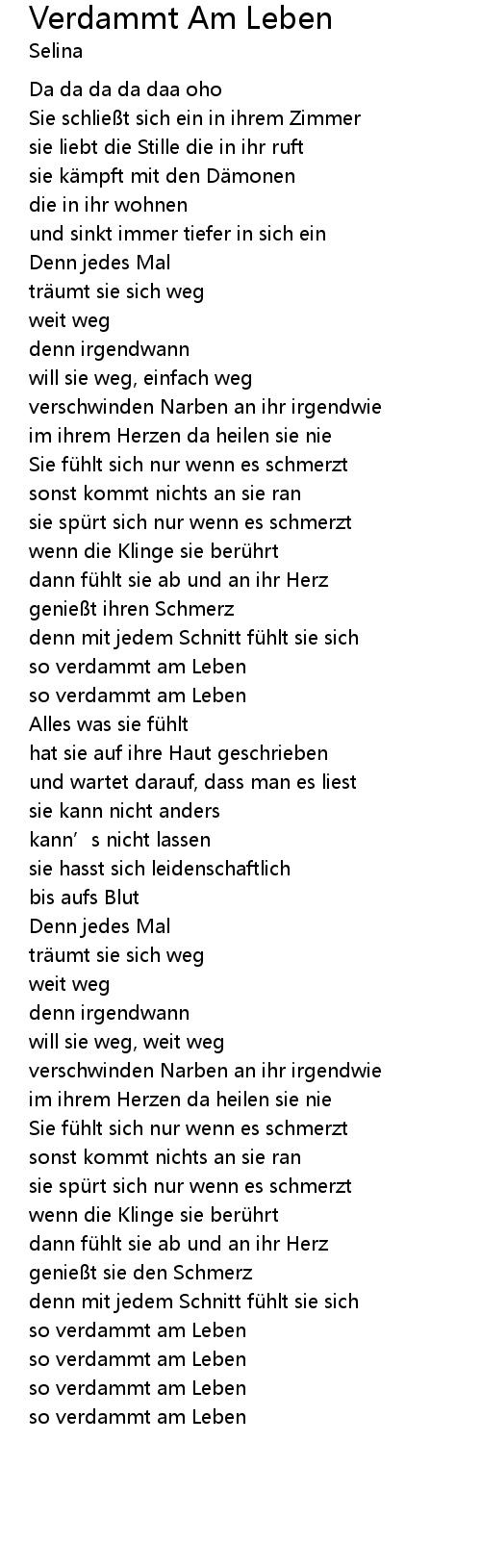 | Sie fü hlt sich nur wenn es schmerzt | |