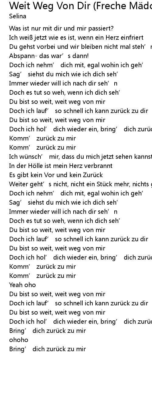 | Song | Weit Weg Von Dir (Freche Mädchen Version) |