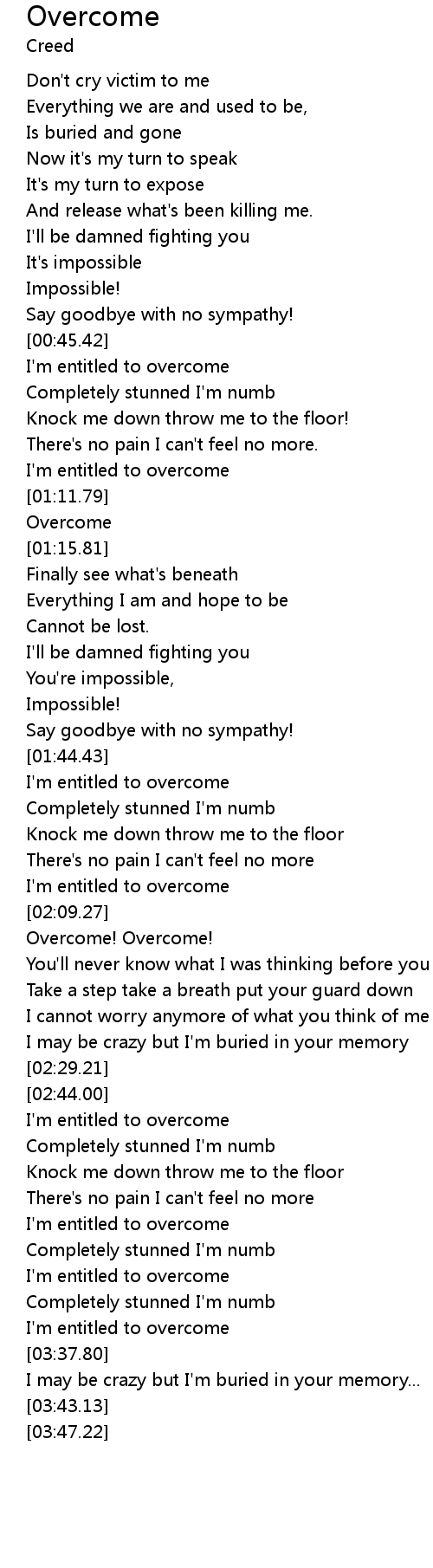 | [01:45.26] | I'm entitled to overcome |