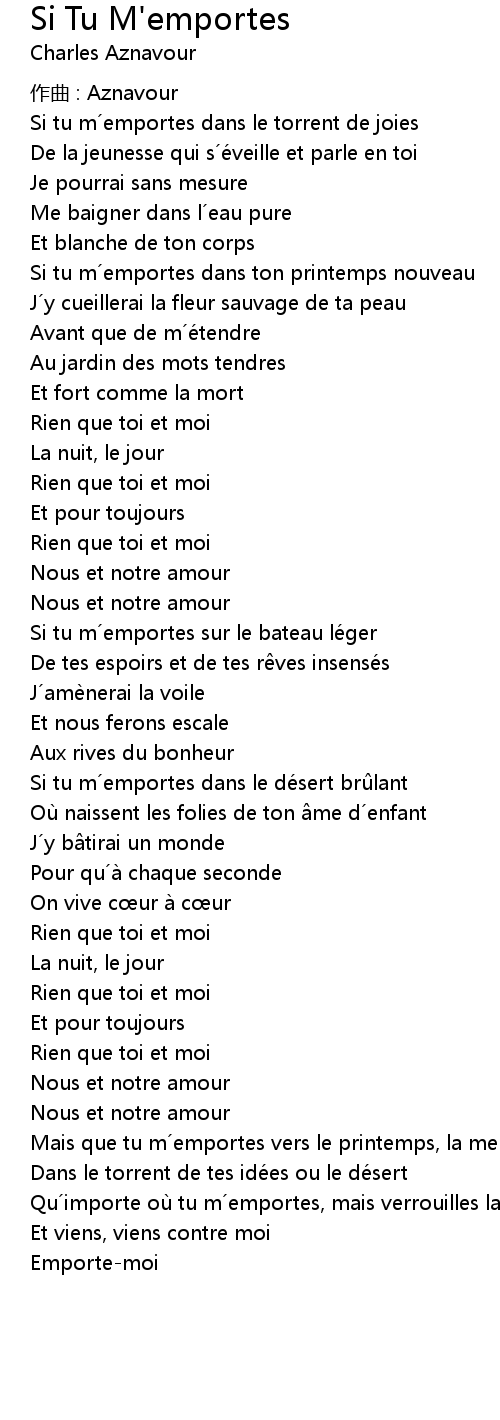 | Mais que tu m´emportes vers le printemps, la mer | |