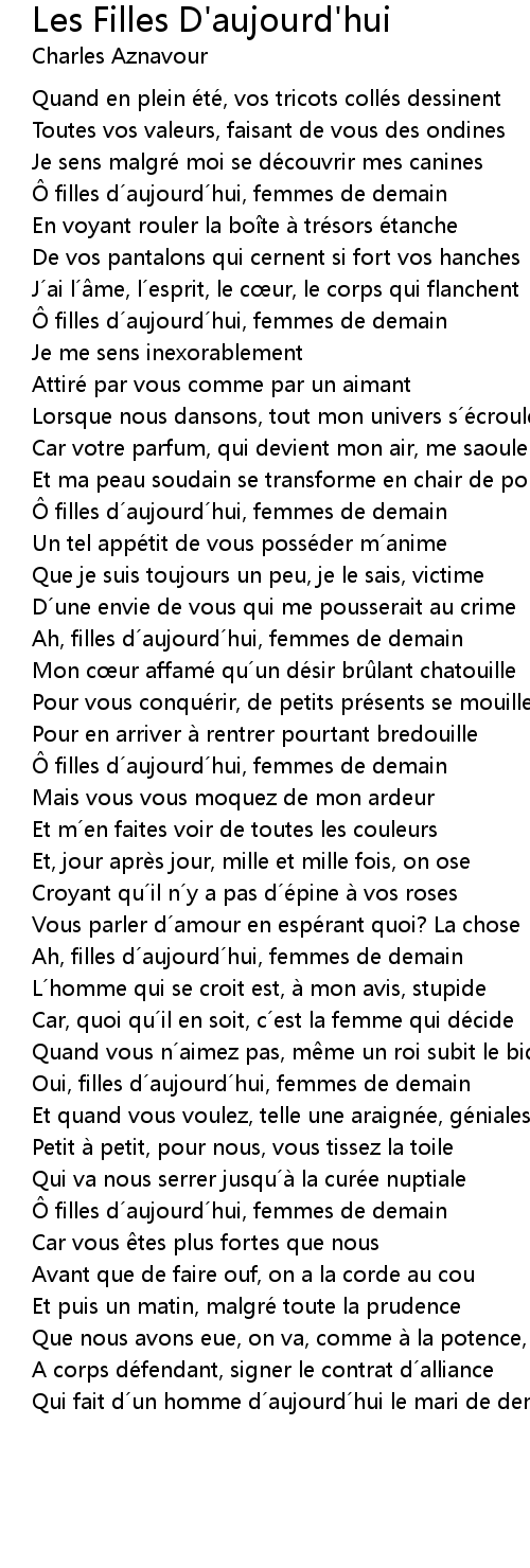 | Song | Les Filles D'aujourd'hui |