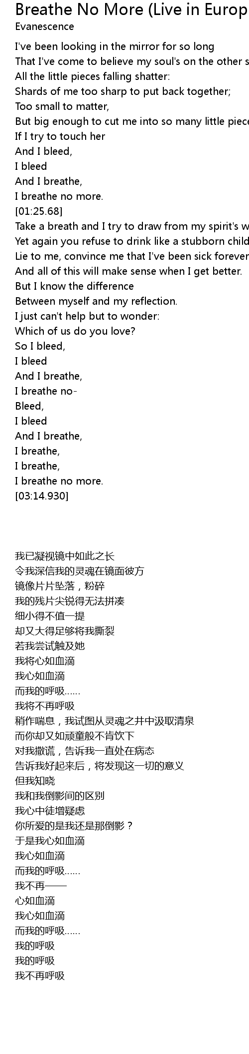 | [01:33.589] | Take a breath and I try to draw from my spirit' s well. |