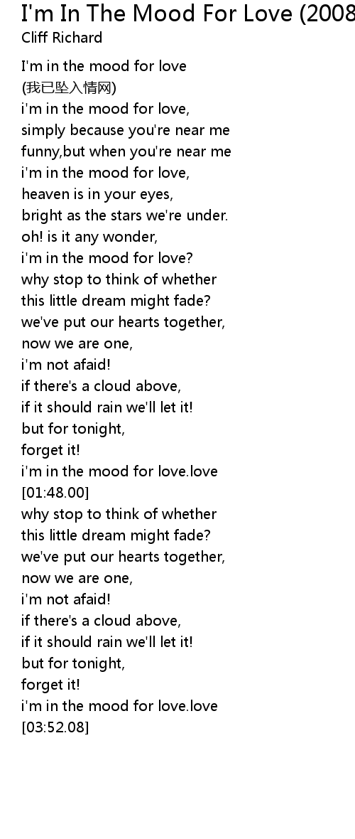 | [03:00.47] | i' m in the mood for love. love |