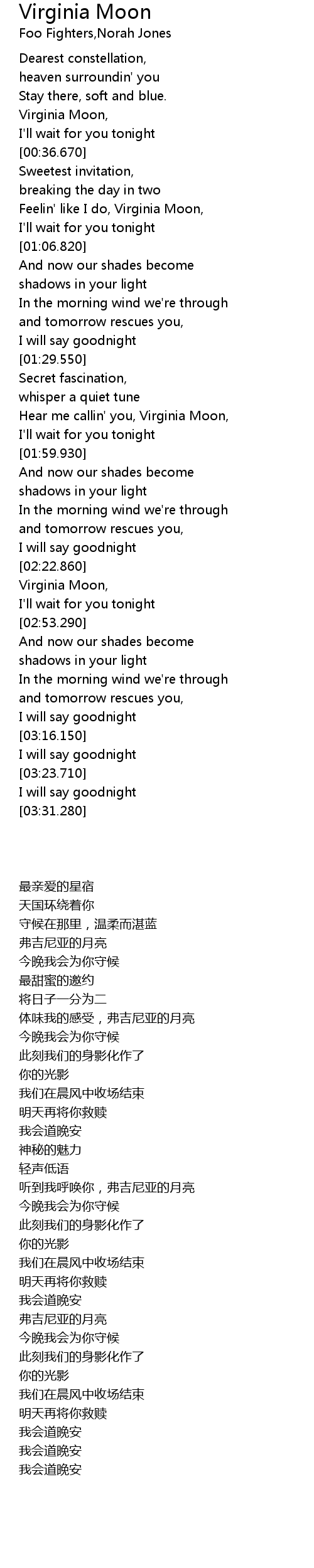 | [00:54.200] | Feelin' like I do, Virginia Moon, |