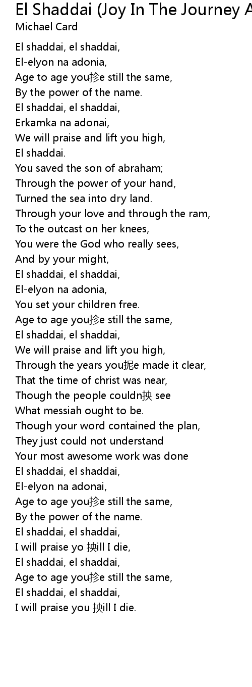| Song | El Shaddai (Joy In The Journey Album Version) |