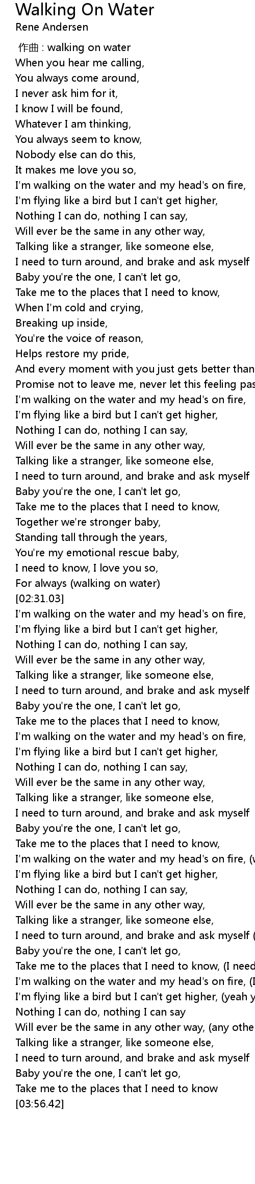| [03:16.71] | I'm walking on the water and my head's on fire, (walking on the water) |