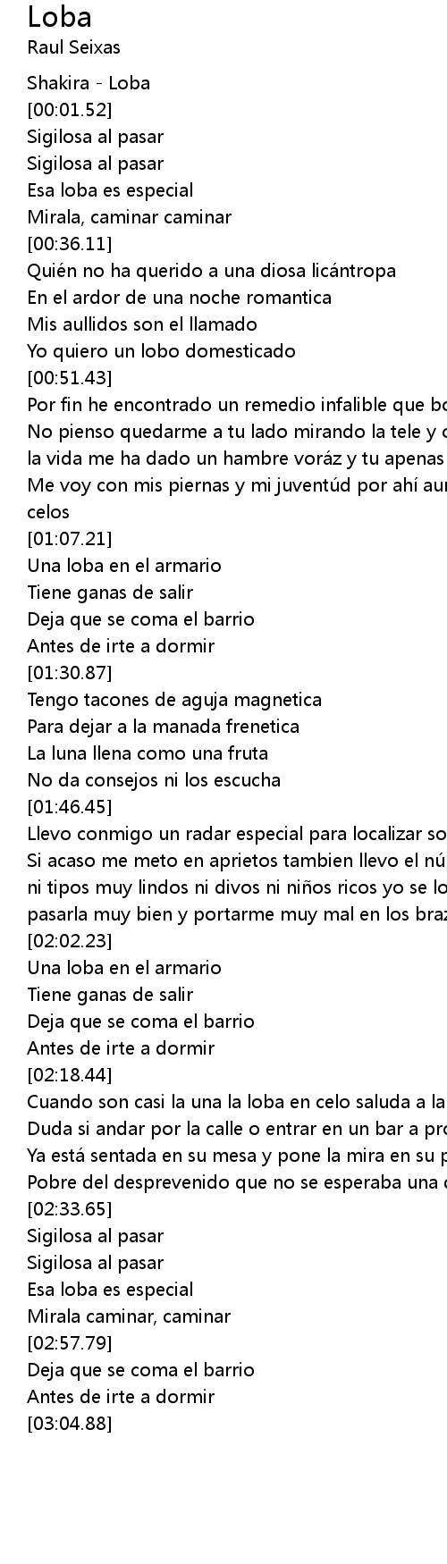 | [00:00.52] | Shakira Loba |