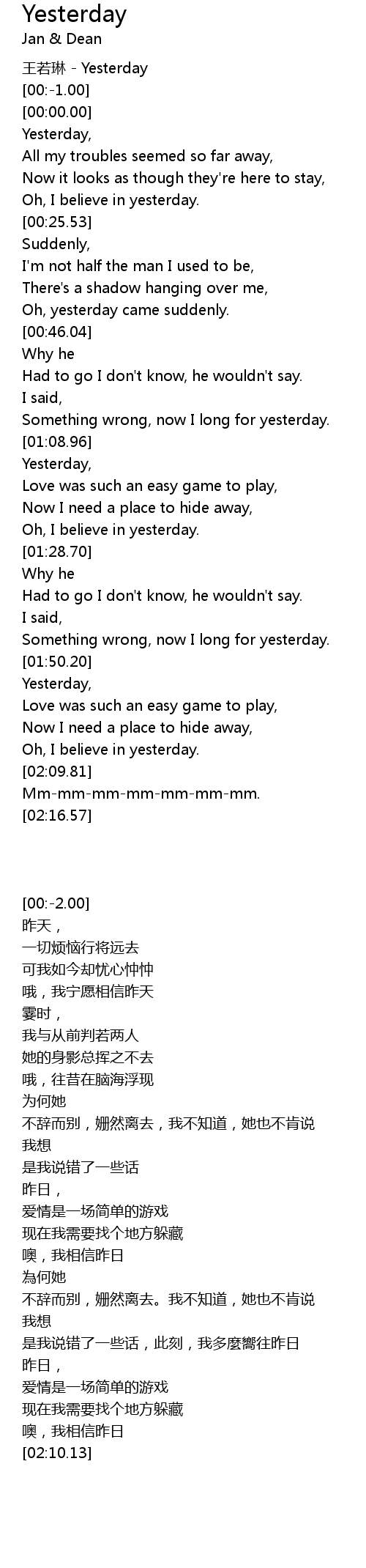 | [01:50.72] | Yesterday, |