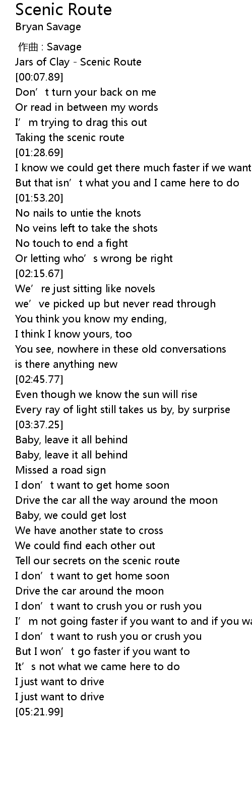 | [00:01.12] | Jars of Clay - Scenic Route |