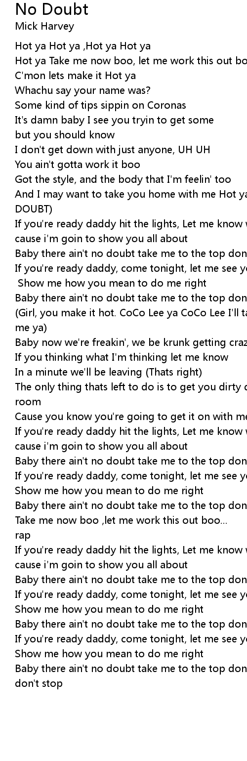 | [00:36.57]And I may want to take you home with me Hot ya (NO DOUBT] |