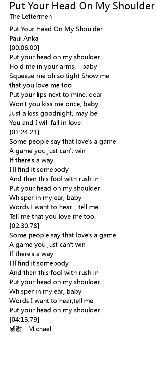 | Song | Put Your Head On My Shoulder (1987 Digital Remaster) |