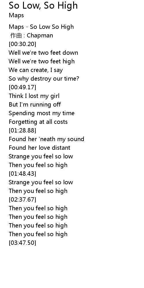| [00:-0.02] | Maps So Low So High |