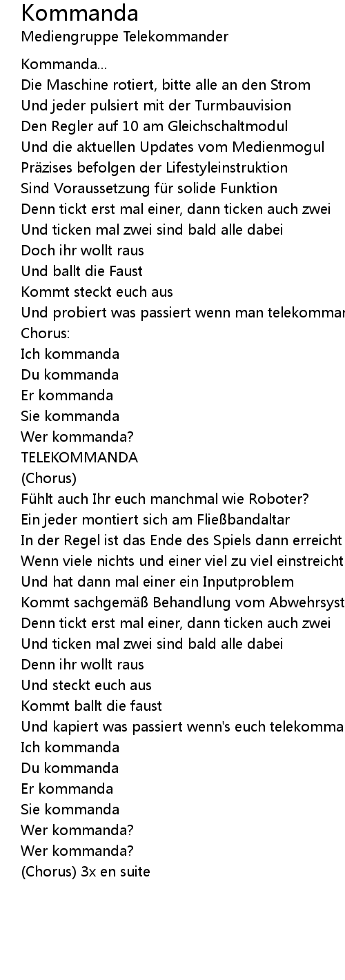 | Wer kommanda? | |