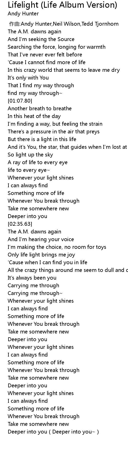 | [00:01.000] | zuò qǔ: Andy Hunter, Neil Wilson, Tedd Tjornhom |