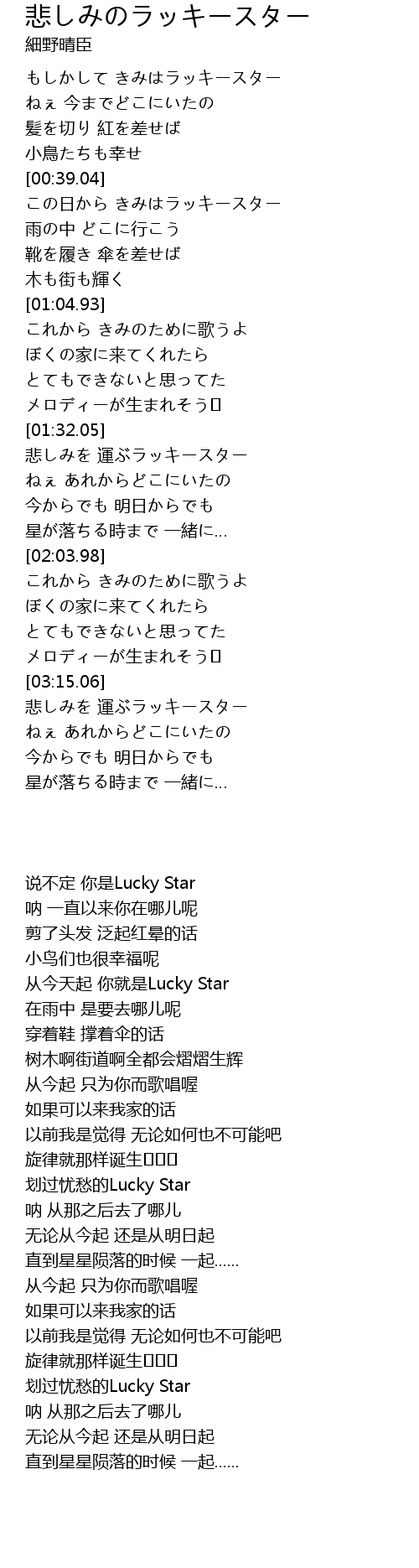 悲しみを 運ぶラッキースター |