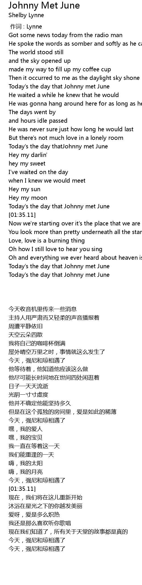 | [01:31.33] | Today's the day that Johnny met June |