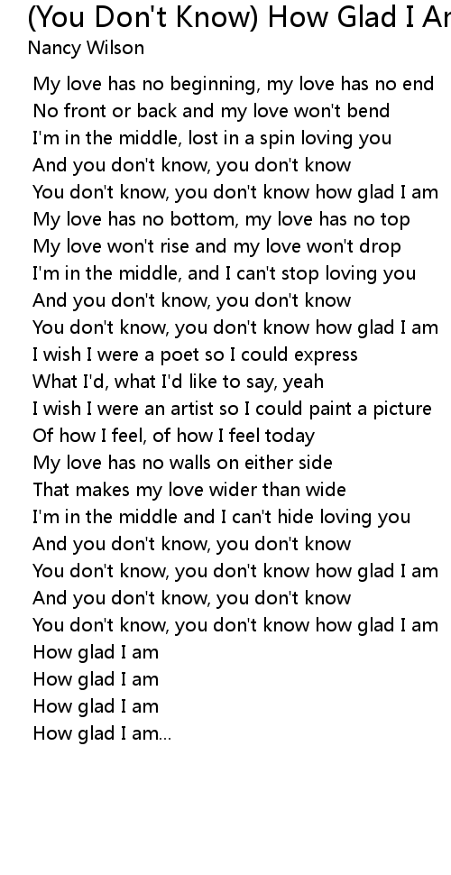 You don't know, you don't know how glad I am |