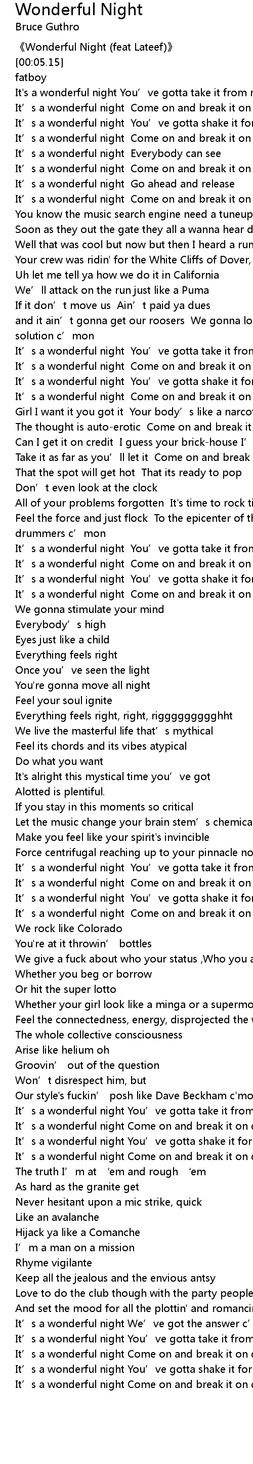 | [00:02.07] | 《Wonderful Night (feat Lateef)》 |