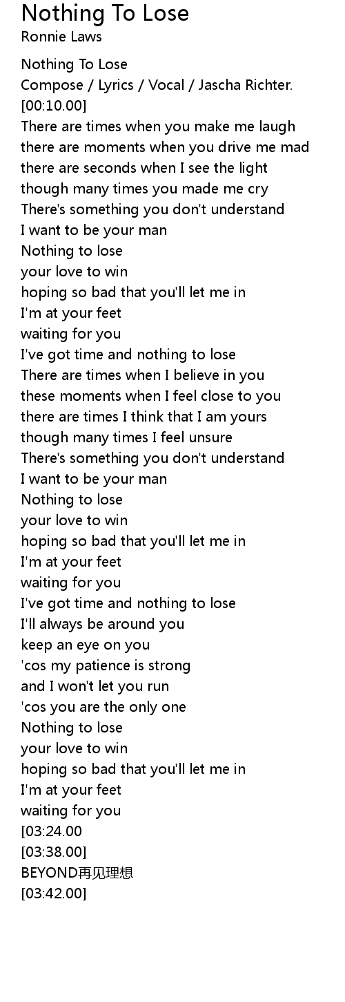 | [00:57.00] | Nothing to lose |