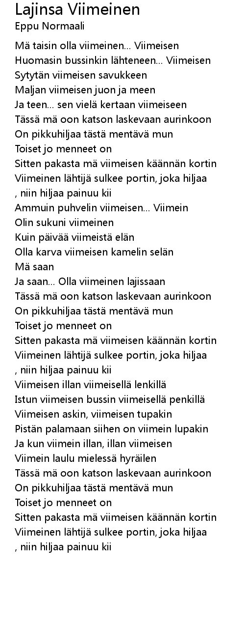 | Huomasin bussinkin l hteneen... Viimeisen | |