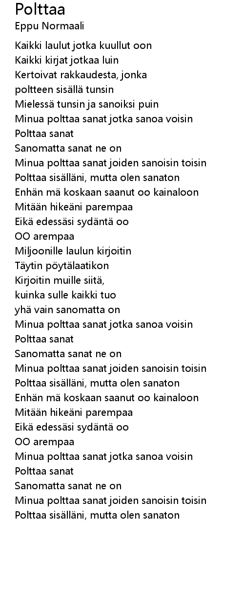 | Polttaa sis ll ni, mutta olen sanaton | |