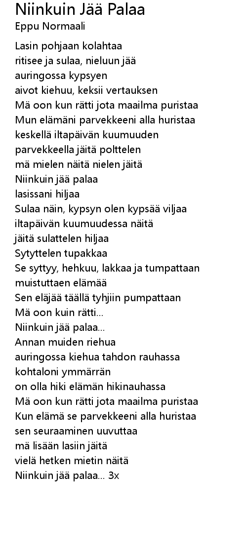 | Sulaa näin, kypsyn olen kypsää viljaa | |