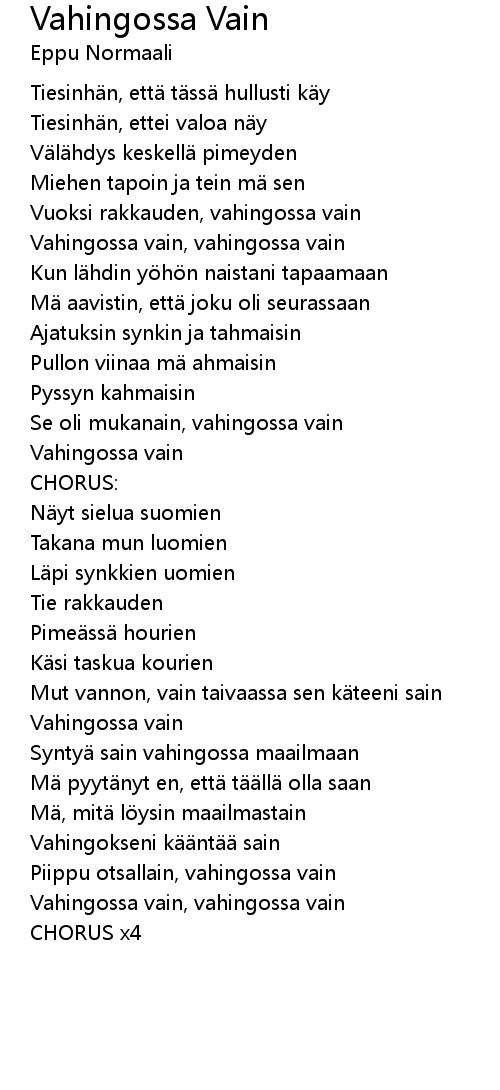 | Song | Vahingossa Vain |